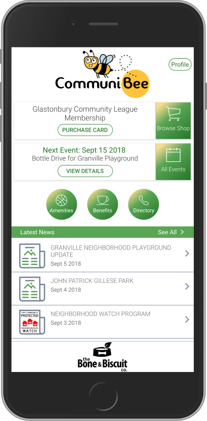 CommuniBee keeps your residents connected and informed of community events, amenities, local businesses, and more. Buy your community membership, search local directories for contacts, and have the latest community news at your fingertips.