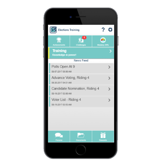 This Reach-driven app delivers training to elections trainees distributed across a wide area, and provides a powerful learning and communications platform to prepare elections staff for upcoming elections.